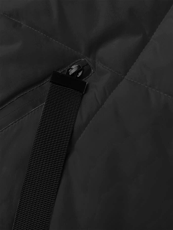 Bunda má volný střih, je zateplená vrstvou syntetické péřové výplně, má dvě kapsy a zapíná se zipem. Model má kapuci, kterou není možné odepnout. Na koncích rukávů jsou skryté stahovací lemy. Bunda má délku ke kolenům.