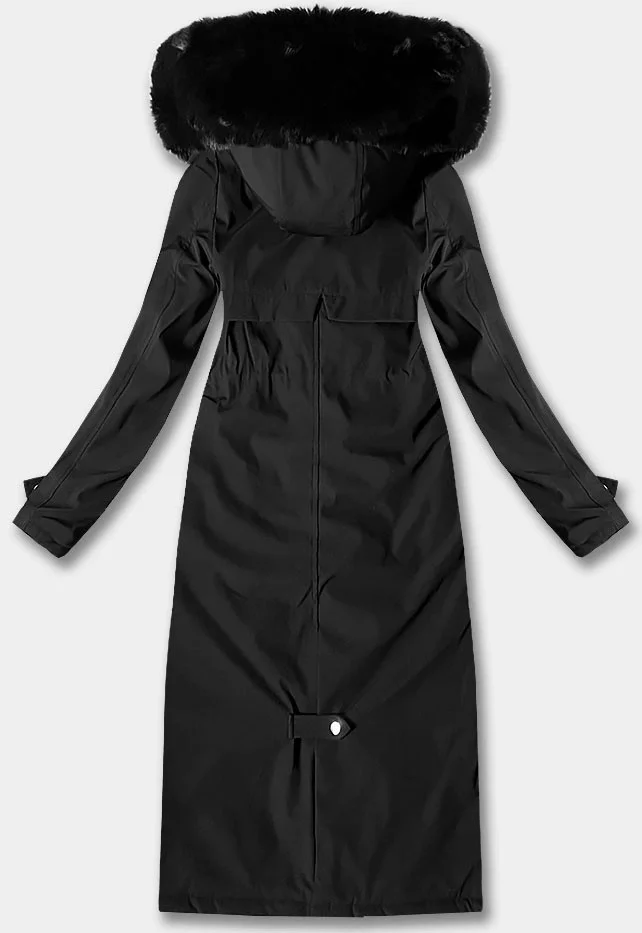 Černá dlouhá hrubší zimní bunda s kapucí Libland (7614)