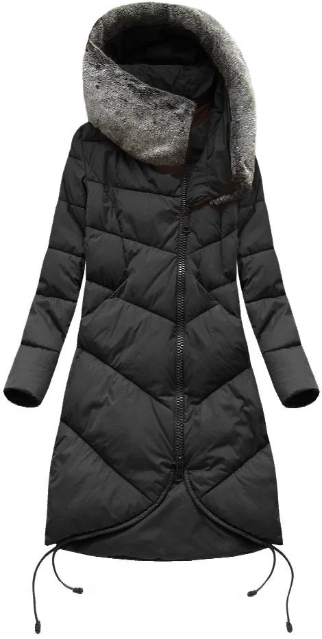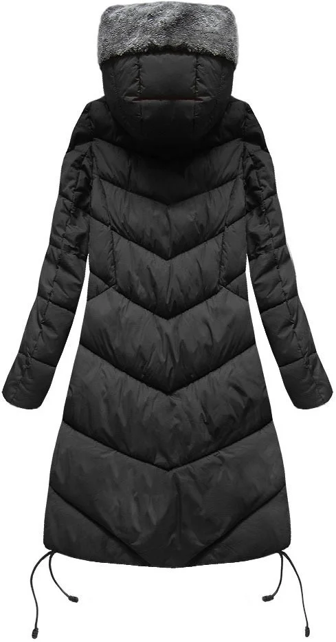 Černá dlouhá zimní bunda s kapucí model 21241716 - Libland