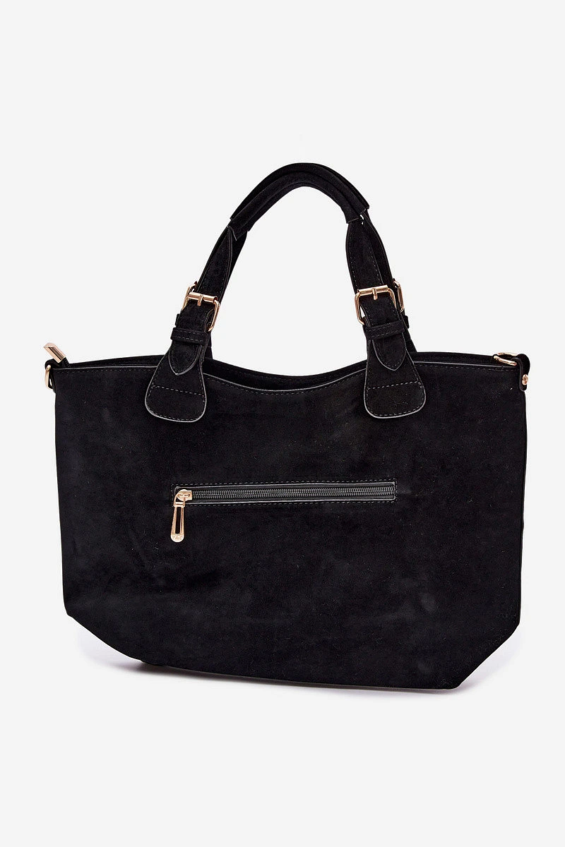 Klasická dámská kabelka vyrobená z imitace semiše je elegantní a univerzální doplněk, který se skvěle hodí jak na každodenní nošení, tak na formálnější příležitosti. Model je zapínán na zip, což zajišťuje bezpečí uložených věcí. Vnitřek kabelky je rozdělen na dvě přihrádky a vybaven praktickými kapsami, které usnadňují organizaci a pomáhají udržet pořádek. Kabelka má pohodlné držadla na nošení v ruce a odnímatelný pásek, díky kterému ji lze nosit i na rameni nebo přes rameno – podle potřeby. Šířka - 39 cm Výška - 25 cm Tloušťka - 11 cm