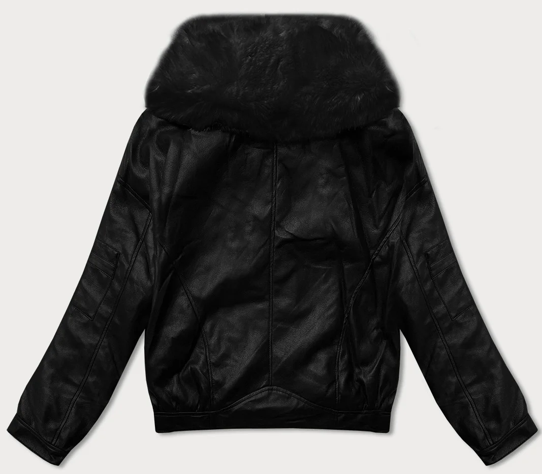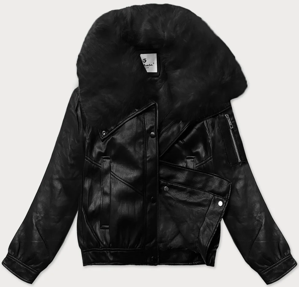 Černá kožená bunda s velkým límcem model 21248134 - Glakate