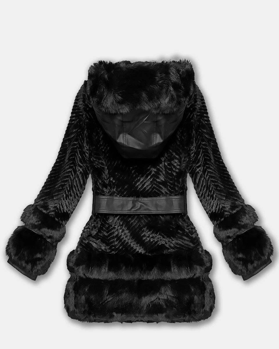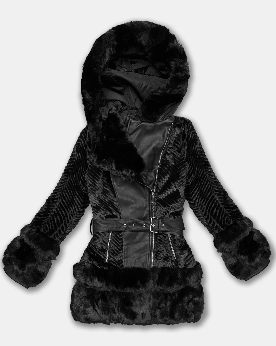 Černá kožešinová dámská bunda s prvky z eko kůže J Style (11Z8072)