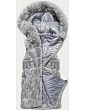 Vesta má kapuci, dvě kapsy a zapíná se dvousměrným zipem. Model má délku do poloviny stehen.