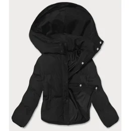 Černá krátká bunda pro přechodné období s kapucí (5M3117-392)