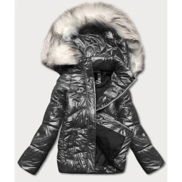 Černá krátká dámská zimní károvaná bunda (16m9052-392)