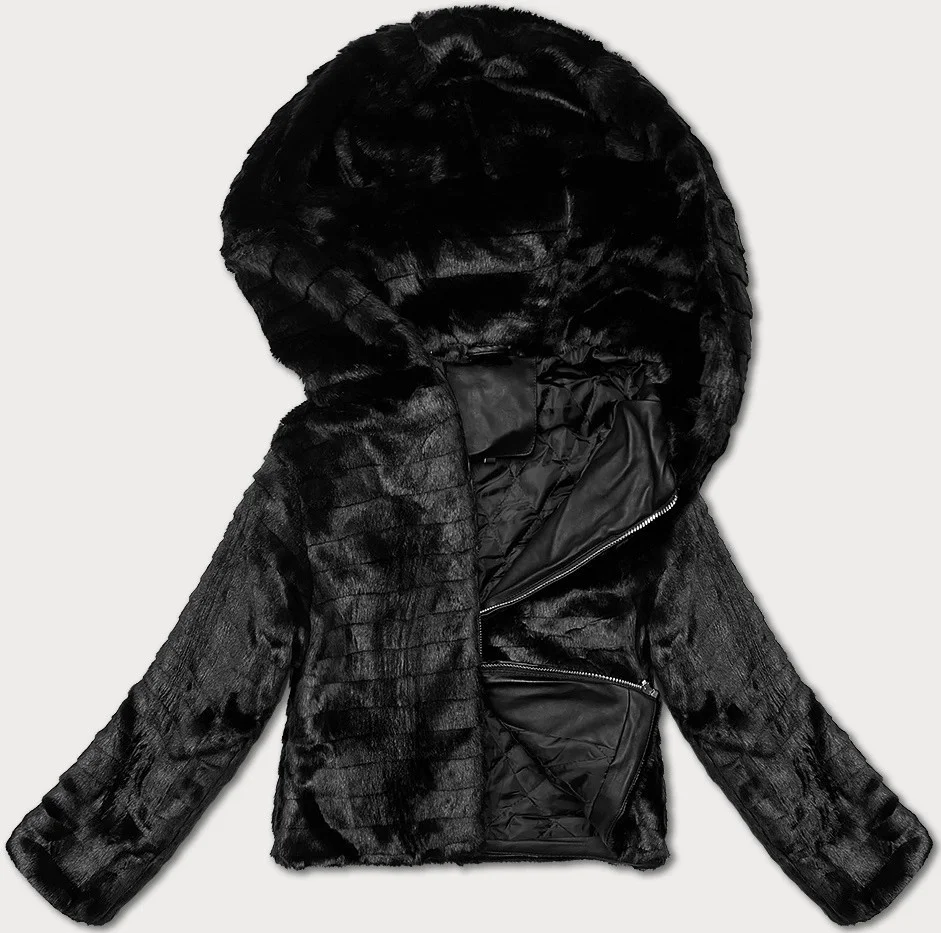 Černá krátká kožešinová bunda s kapucí model 21248767 - J.STYLE