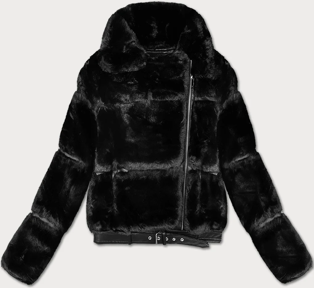 Černá krátká kožešinová bunda s límcem model 21247787 - J.STYLE
