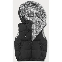 Černá krátká péřová dámská vesta s kapucí (16M9091-392)