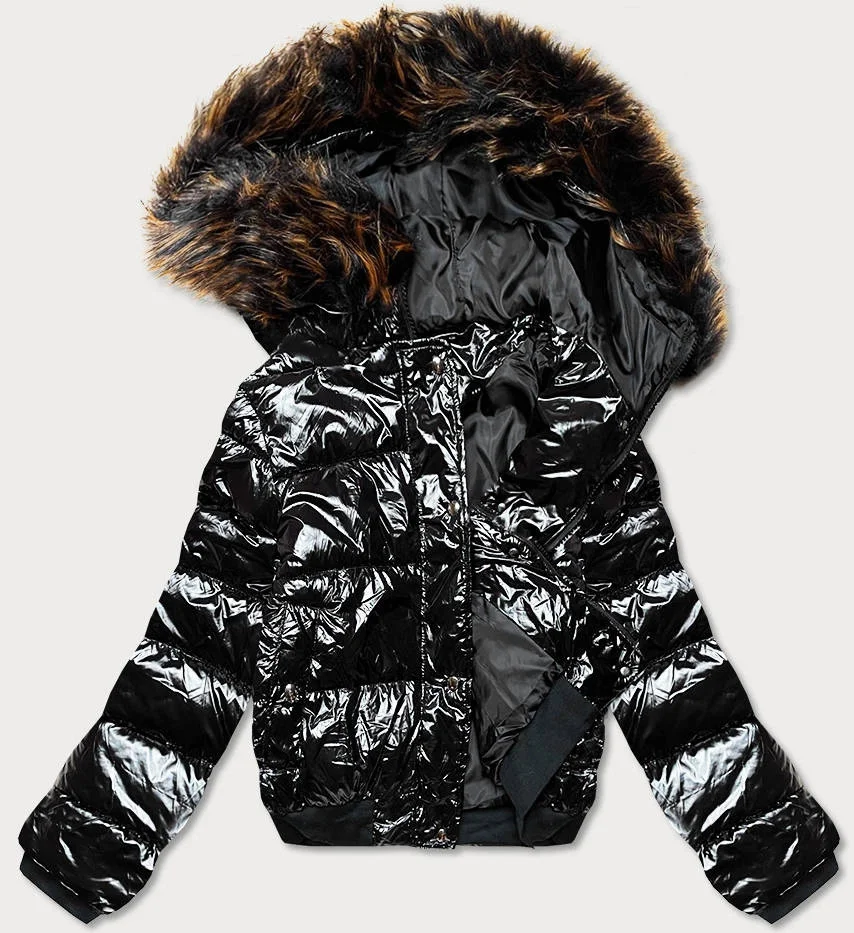 Černá lesklá dámská bunda s kapucí model 16254417 - MEZZO