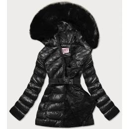 Černá lesklá zimní bunda s mechovitou kožešinovou podšívkou (w674)