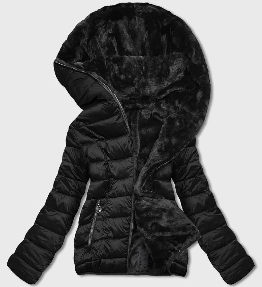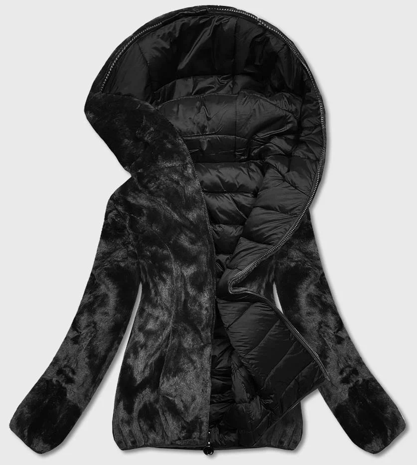 Černá oboustranná dámská bunda - kožíšek (b8051-1)