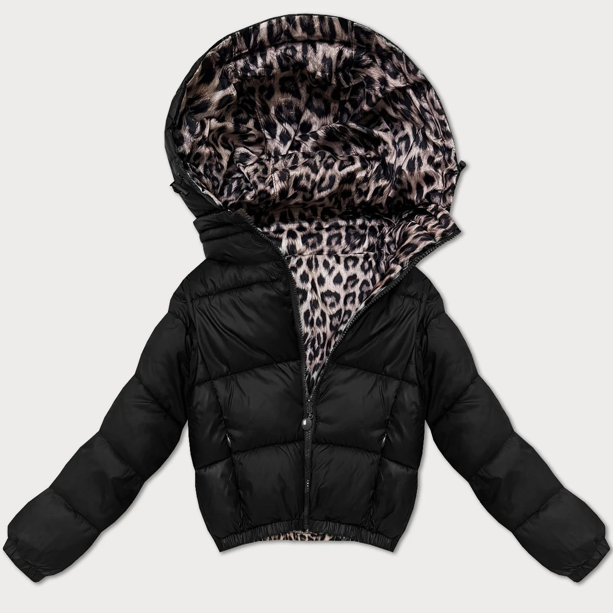 Černá oboustranná dámská krátká bunda s panteřím vzorem model 21308836 - MINORITY