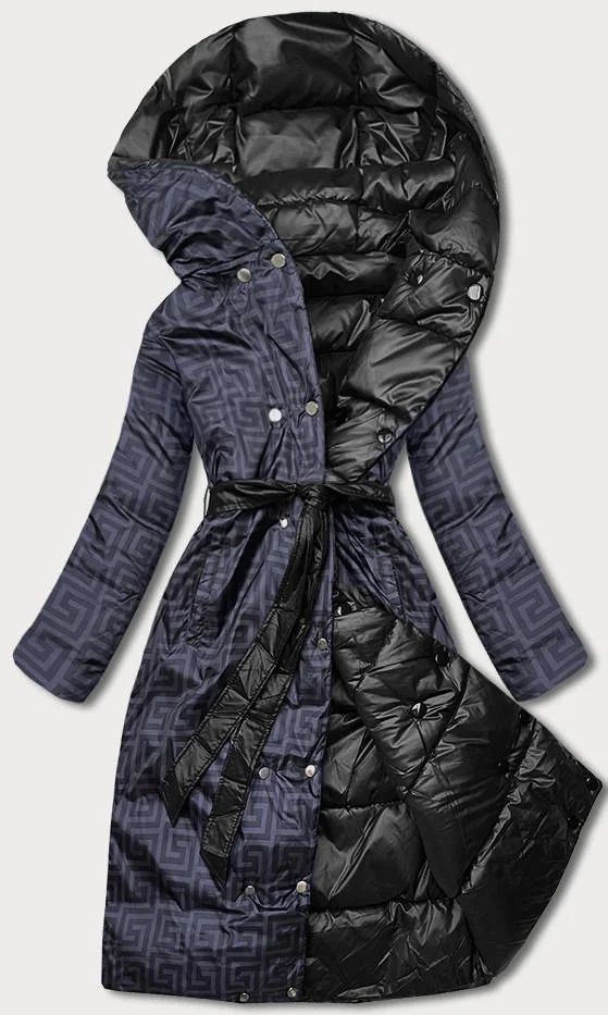 Černá oboustranná dlouhá bunda s kapucí (p22-6635-1)
