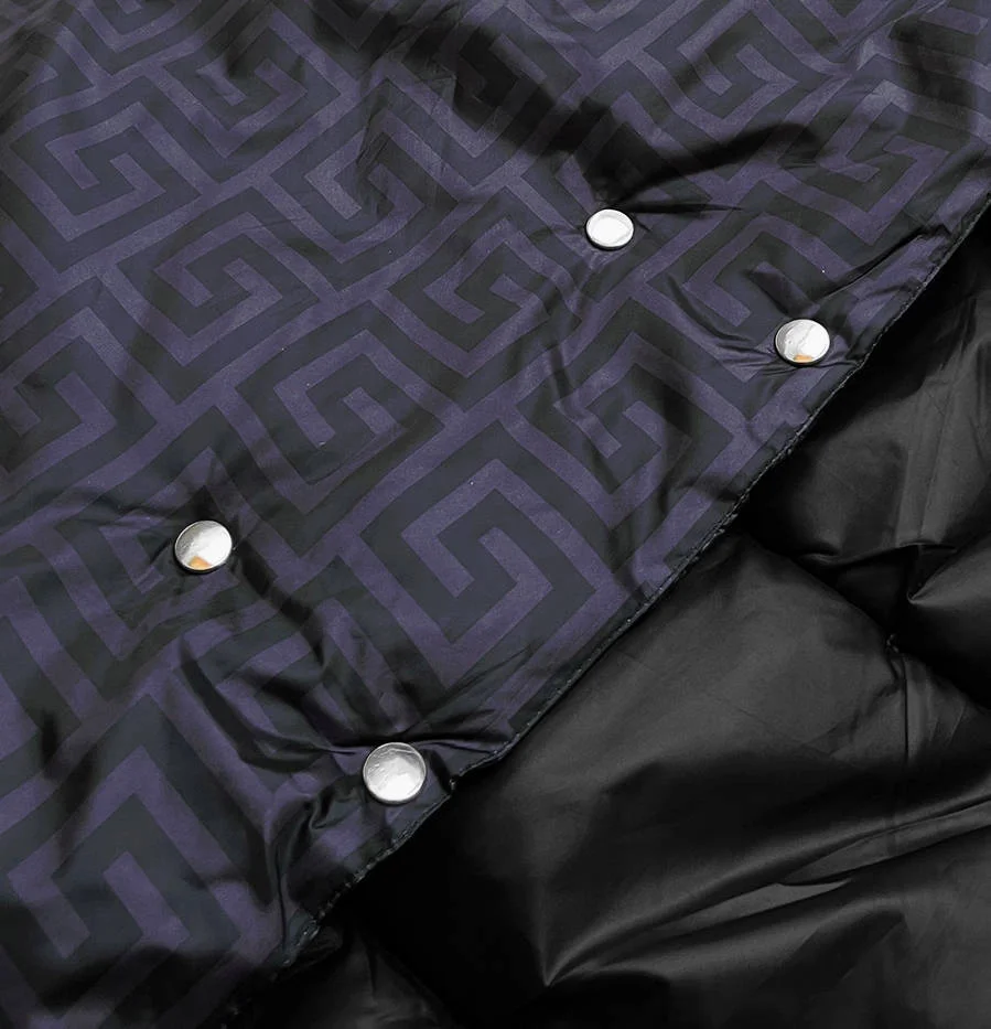 Oboustranná bunda - jedna strana bundy je prošívaná a druhou zdobí geometrický vzor
