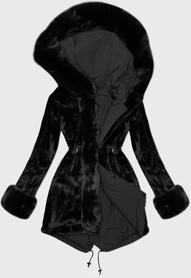 Černá oboustranná zimní bunda parka-kožíšek J Style (11Z8085)