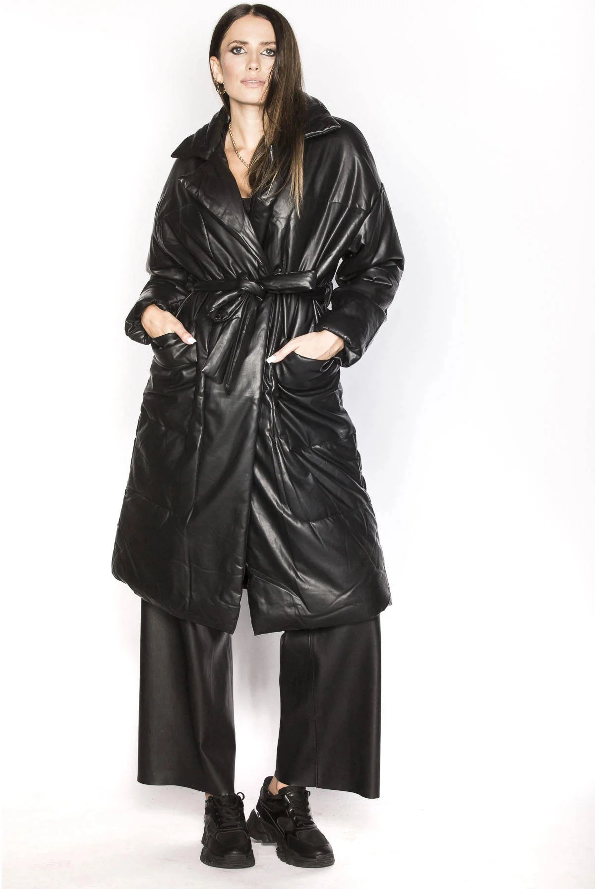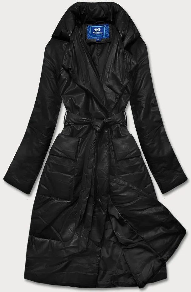 Černá oversize bunda z ekologické kůže (AG1-J9080)