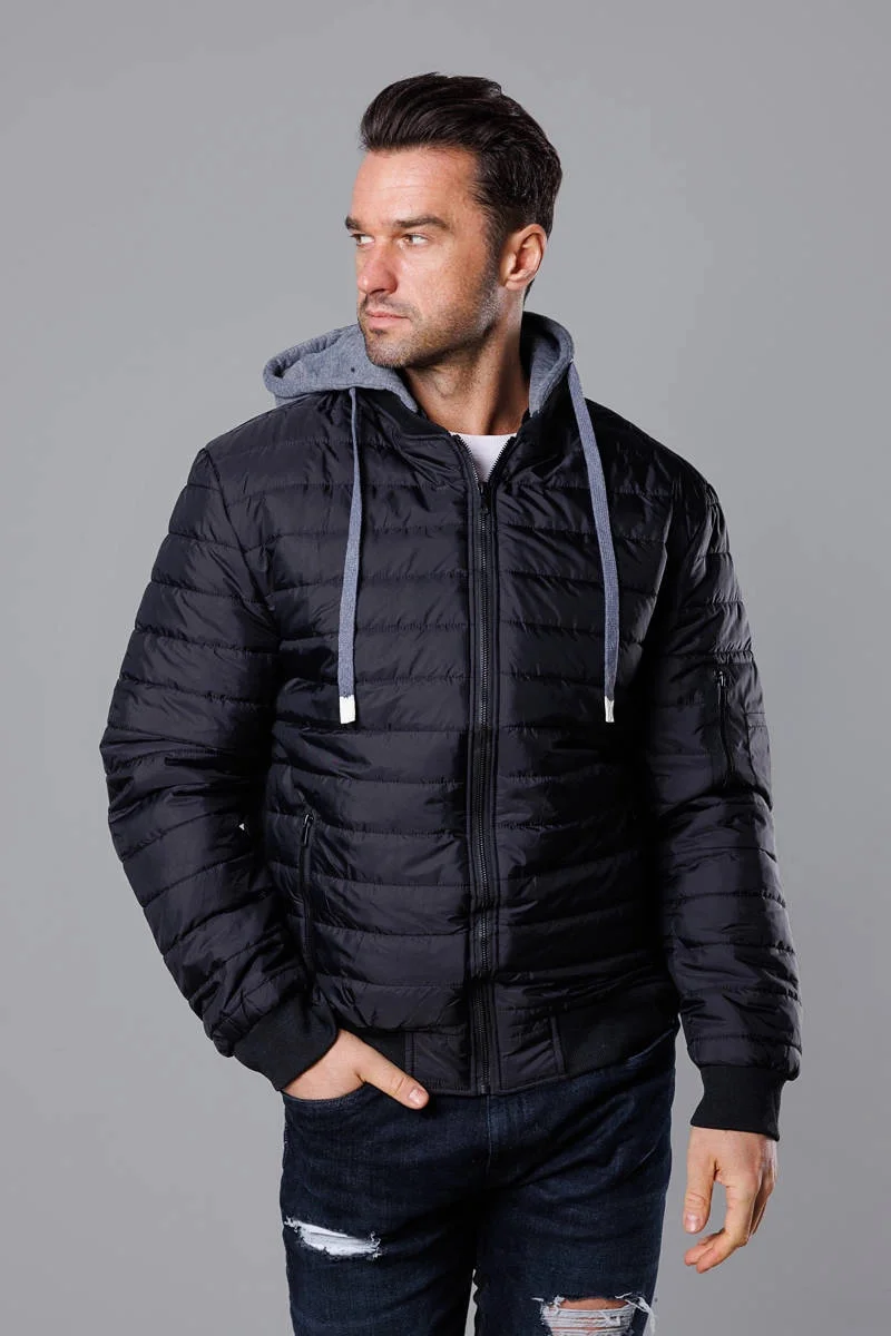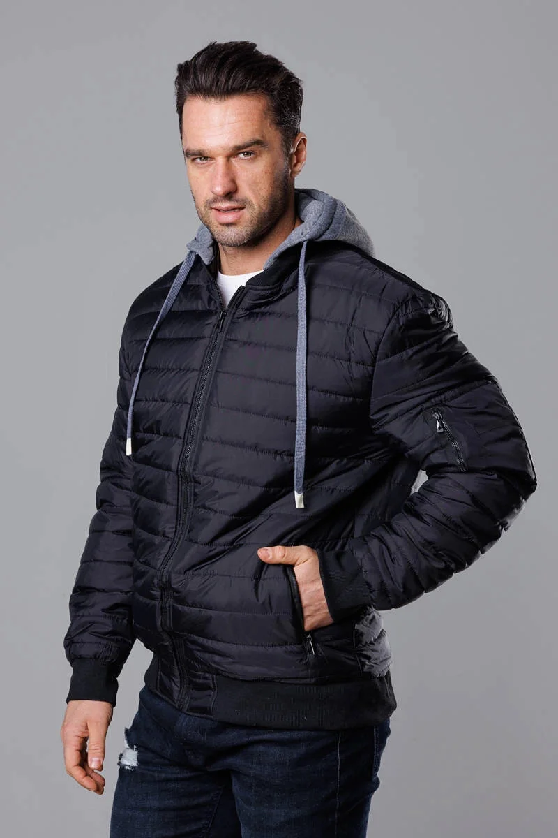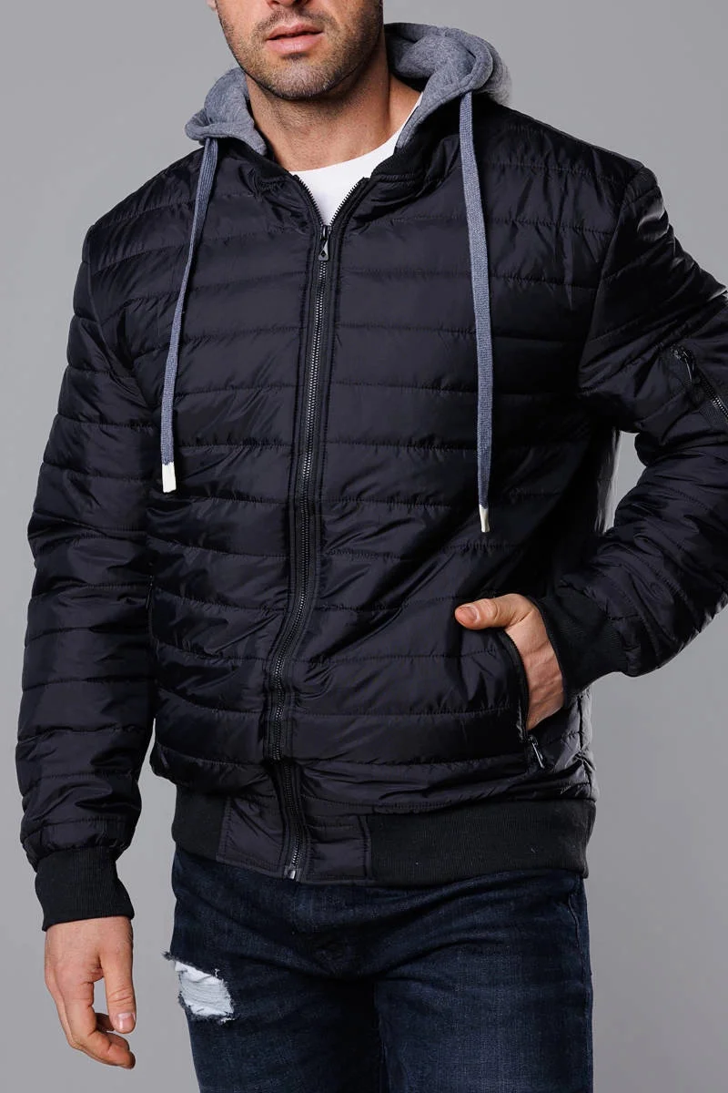 Přidání recenze k Černá pánská bunda typu "bomber" s teplákovou kapucí (8M985-392)