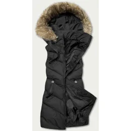 Černá péřová dámská vesta s kožešinou (5M787-392)