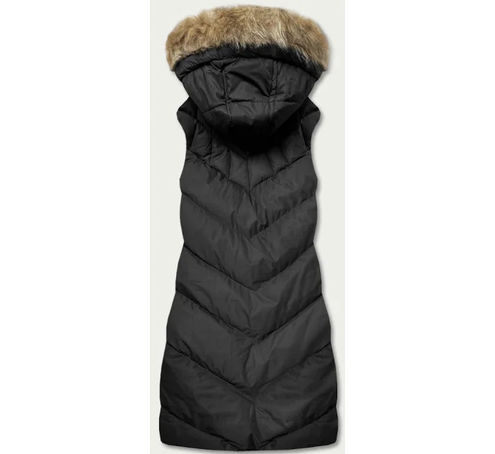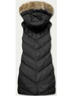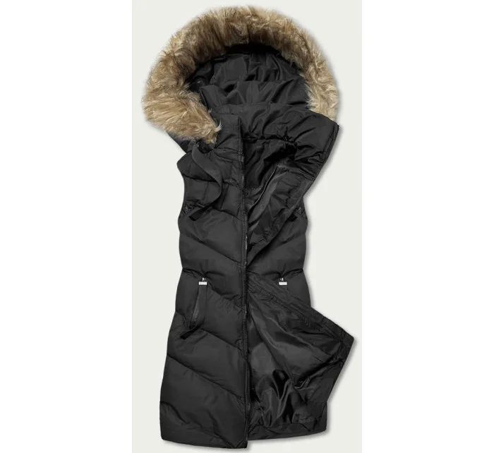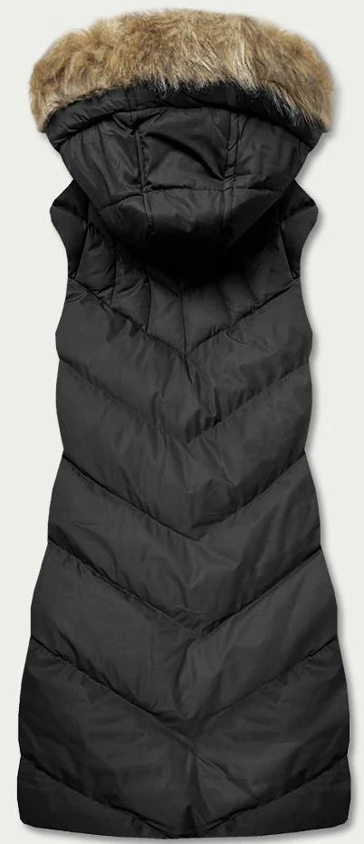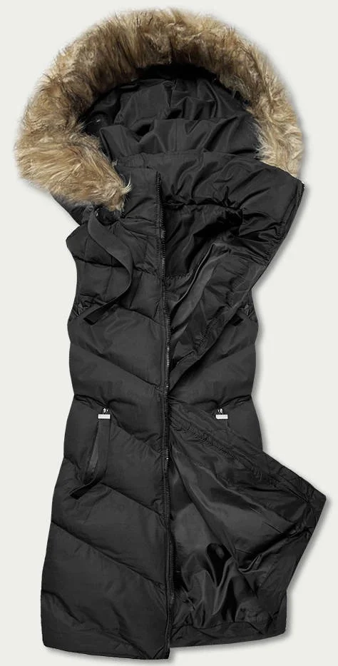 Černá péřová dámská vesta s kožešinou model 17721959 - J.STYLE