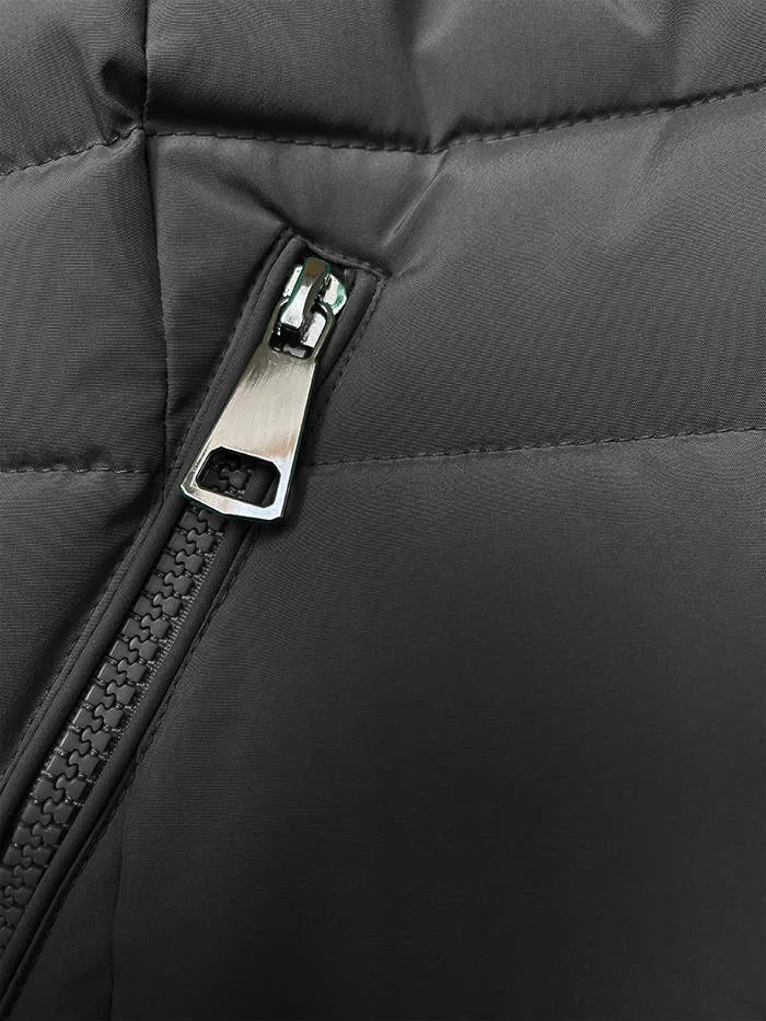 Bunda je lehce vypasovaná, je lehce zateplená syntetickou péřovou výplní, má dvě kapsy a zapíná se zipem. Model má kapuci olemovanou kožešinou. Zatímco kapuci není možné odepnout, kožešinu lemující kapuci odepnout lze. Na koncích rukávů jsou skryté stahovací lemy. Bunda má délku do poloviny stehen.