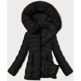 Černá prošívaná bunda pro přechodné období s kožešinou u kapuce model 21787485 - S'WEST