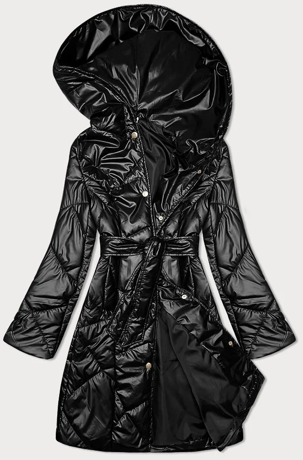 Černá prošívaná bunda s páskem S'West (B8249-1)