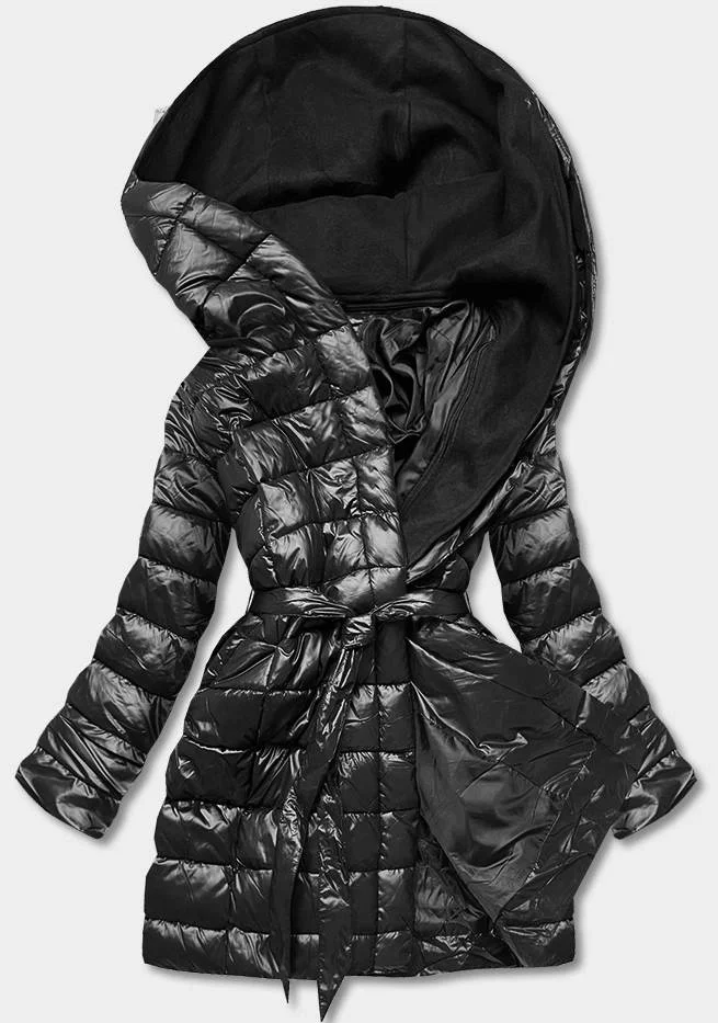 Černá prošívaná bunda se dvojitou kapucí (L22-9862-1)