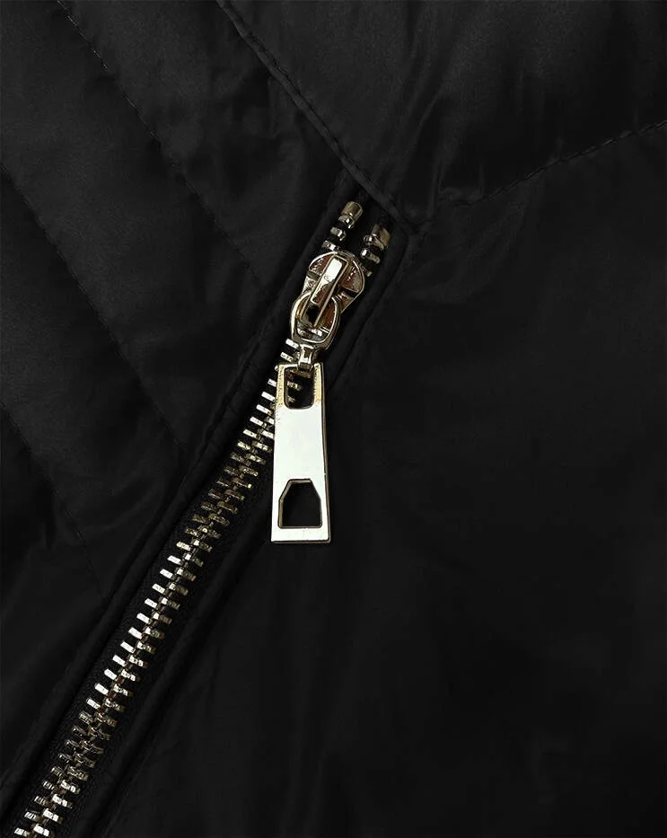Bunda je vypasovaná, je zateplená tenkou vrstvou syntetické péřové výplně, má dvě kapsy se zapínáním na zip a zapíná se dvousměrným zipem. Rukávy mají uvnitř podšívku, která je na konci rukávů olemovaná gumou. Model má délku do poloviny stehen.