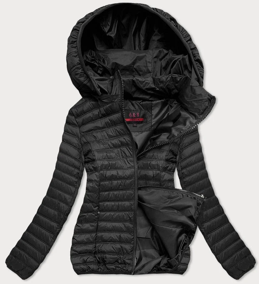 Černá prošívaná dámská bunda s kapucí (2021-09)