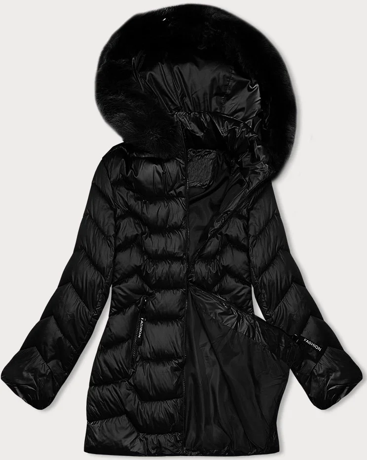 Černá prošívaná dámská bunda s kapucí model 21247411 - S'WEST