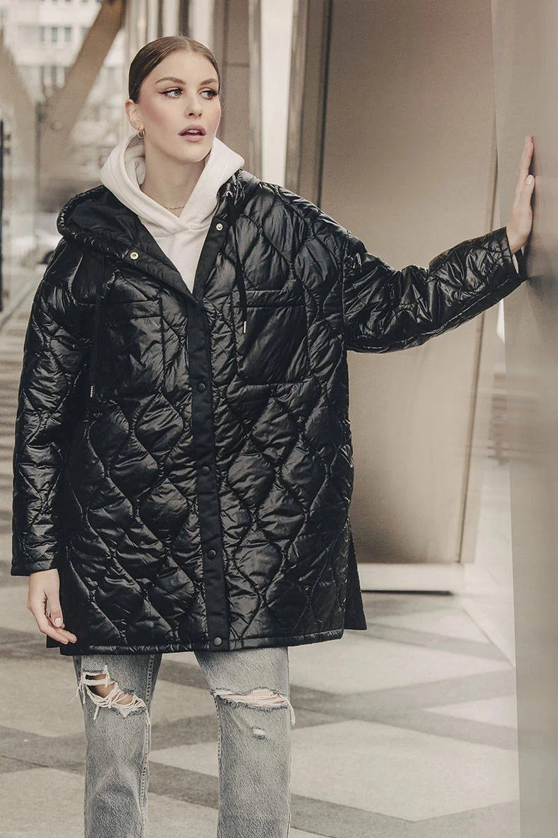 Černá prošívaná dámská oversize bunda s kapucí model 20471205 - Ann Gissy