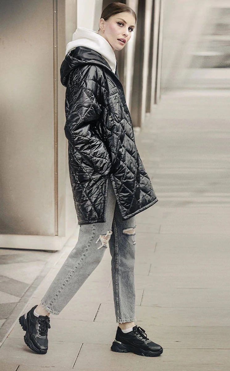 Přidání recenze k Černá prošívaná dámská oversize bunda s kapucí model 20471205 - Ann Gissy