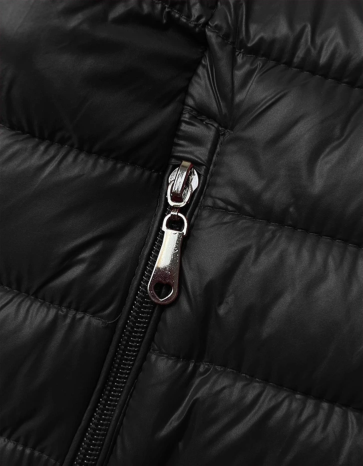 Vesta je lehce zateplená syntetickou péřovou výplní, má vypasovaný střih, dvě kapsy a zapíná se zipem. Model má délku k bokům.