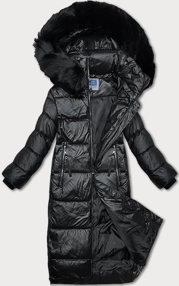 Černá prošívaná zimní bunda s kapucí model 21248879 - WAY MODE