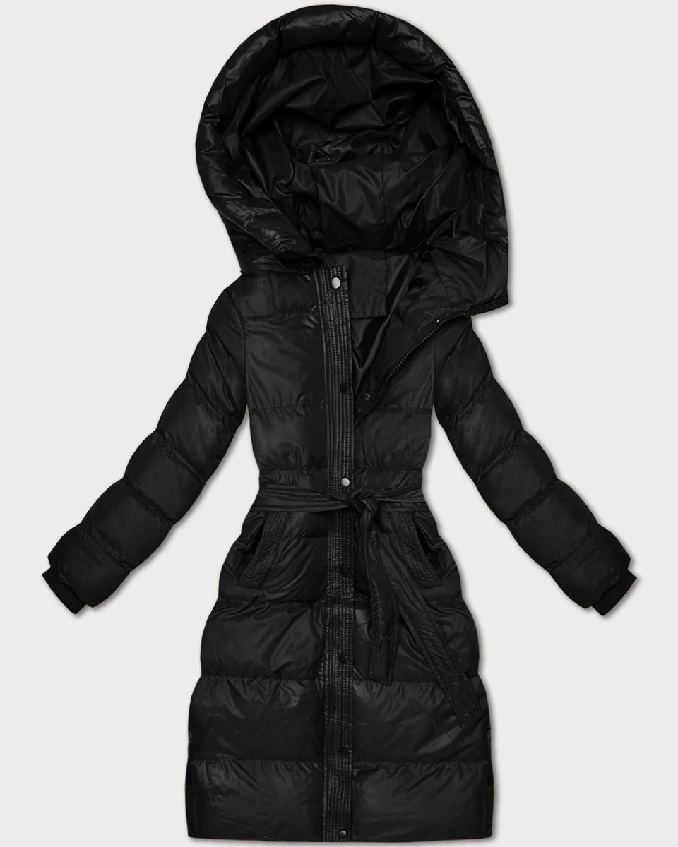 Černá prošívaná zimní bunda s páskem model 21748211 - J.STYLE