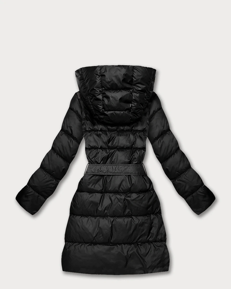 Bunda je zateplená syntetickou péřovou výplní, má pásek pro zavazování, dvě kapsy bez zapínání a zapíná se dvousměrným zipem a panelem s patentkami. Model má kapuci, kterou není možné odepnout. Bunda má délku do poloviny stehen.