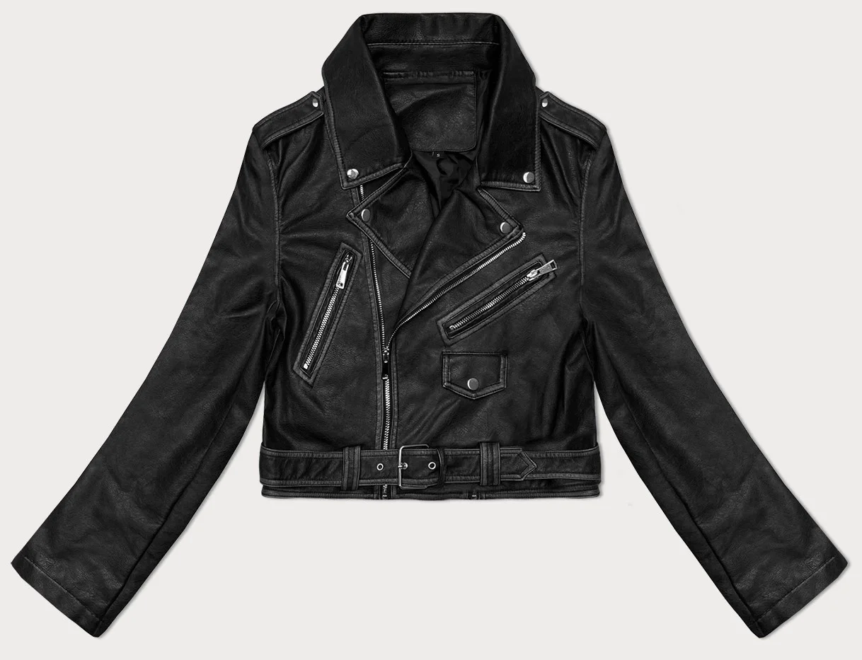 Černá vintage bunda ramoneska s opaskem model 19576638 - J.STYLE