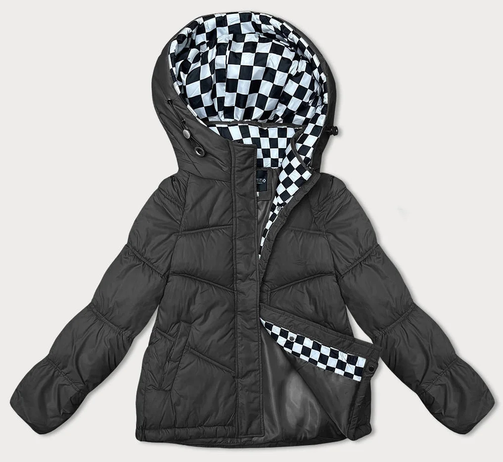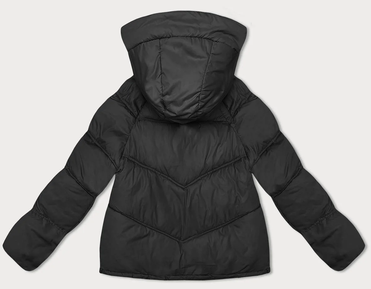 Černá volná dámská bunda s kapucí (8118)