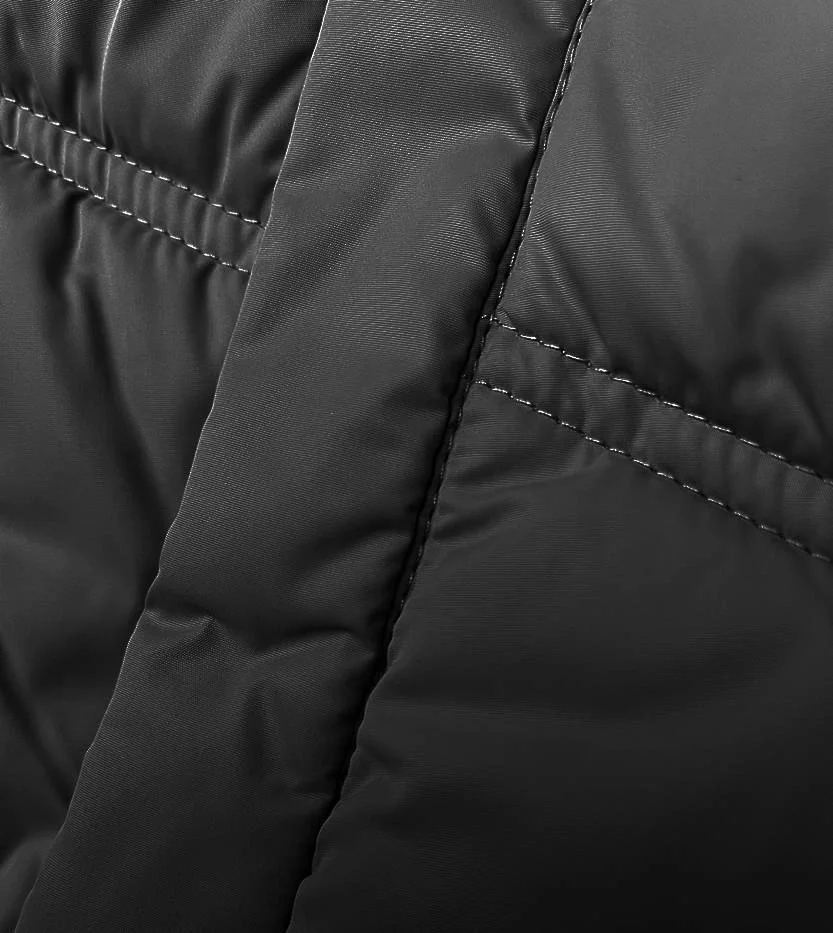 Bunda má volný střih, je zateplená syntetickou péřovou výplní, má dvě kapsy se zapínáním na patentky a zapíná se zipem. Model má stojáček a kapuci, kterou není možné odepnout. Na koncích rukávů jsou skryté stahovací lemy. Bunda má délku k bokům.