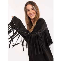 Černá volná dámská mikina s třásněmi (21695)