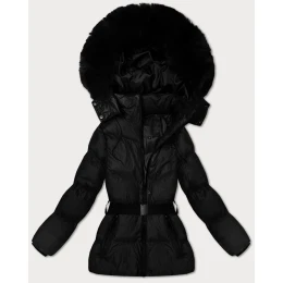 Černá zimní bunda s kapucí a s opaskem J Style (5M3322-392)