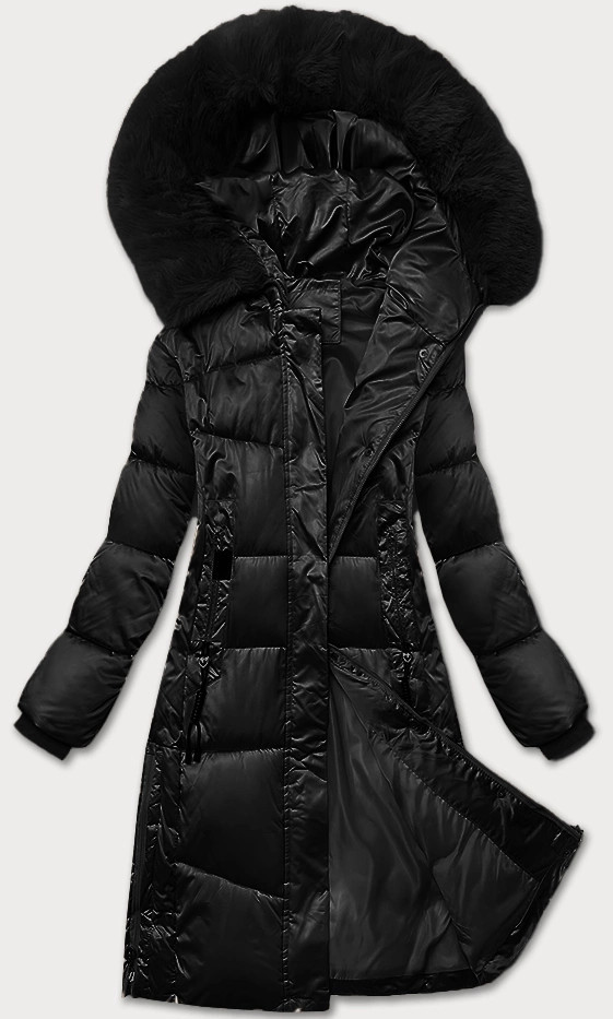 Černá zimní prošívaná plus size bunda s kapucí S'west (B8267-1)
