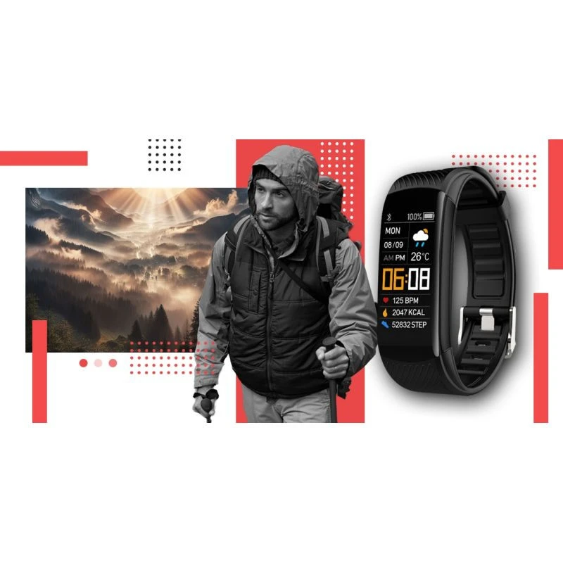 The Giewont GW200-1 smartwatch in black and red is a combination of sporty energy and modern elegance in a uniquely refined form.The smartwatch comes with two straps, black and red.Its dynamic design emphasizes the character of the active user, while giving the device a classy look.The slim design, intense colours and carefully finished envelope create a coherent whole that catches the eye both during workouts and in everyday situations.The large and easy-to-read screen, despite the slim design, provides comfortable operation and clarity of information, while the capacious battery allows you to enjoy long operation without frequent recharging.The smartwatch offers a set of functions to support health and activity, such as heart rate monitoring, sleep quality analysis and monitoring of daily steps and calories burned.It is a personal assistant that helps you take care of your fitness and balance every day.Thanks to the stable Bluetooth connectivity, you can comfortably receive