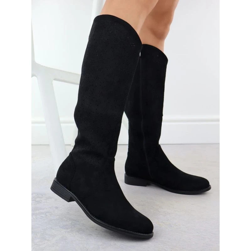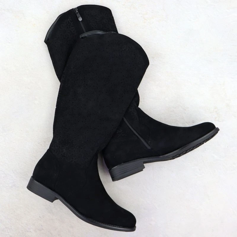 Černé ažurové dámské boty S.Barski 533