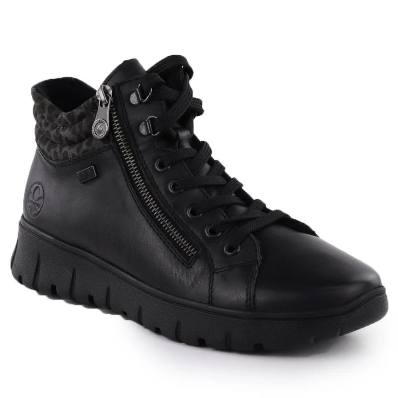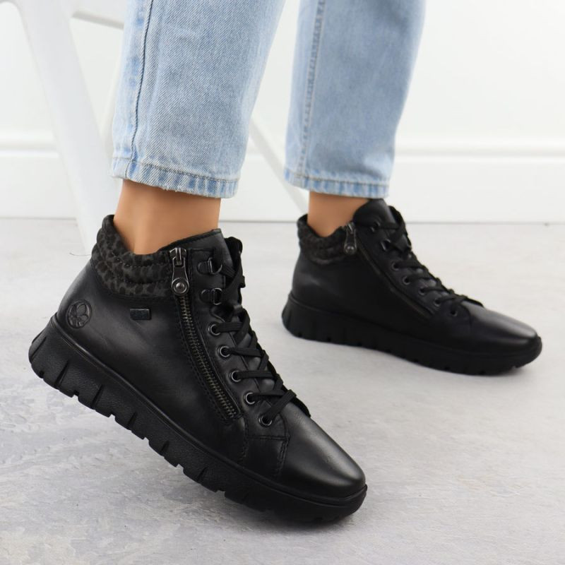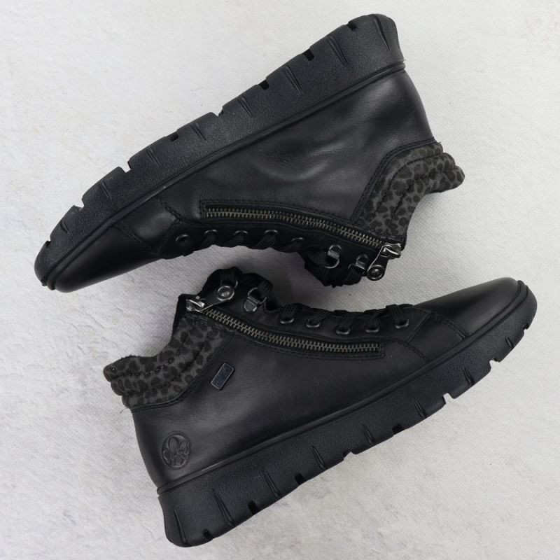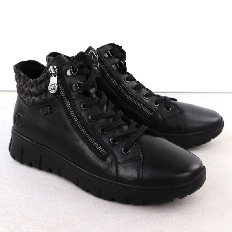 Černé dámské kožené nepromokavé boty Rieker N1305-00