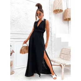 Přidání recenze k Černé dámské mušelínové šaty se zavazovacím výstřihem (8298)
