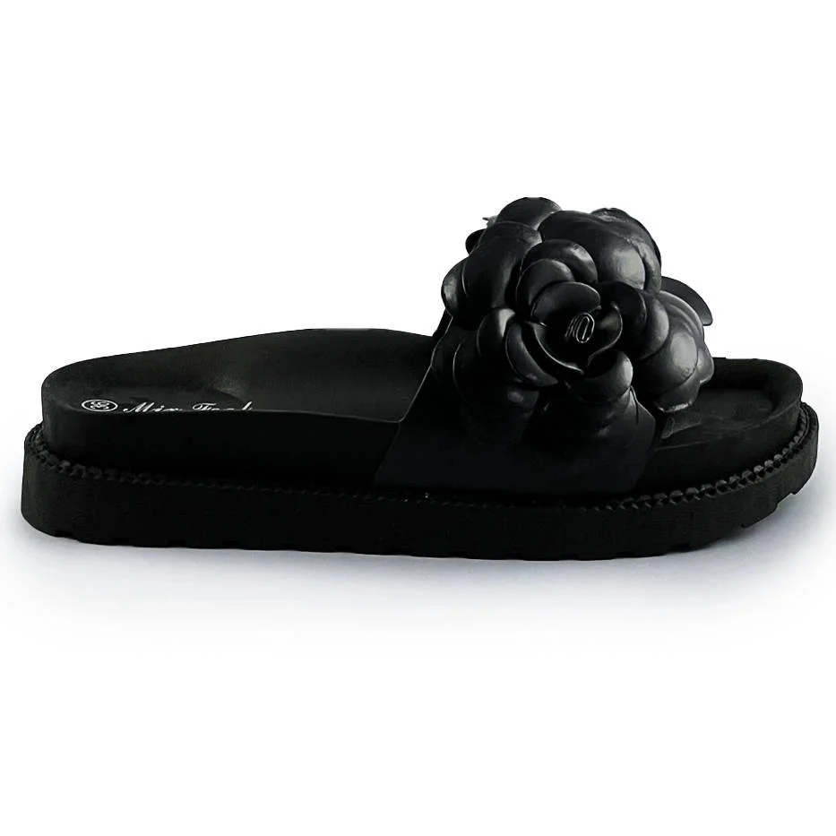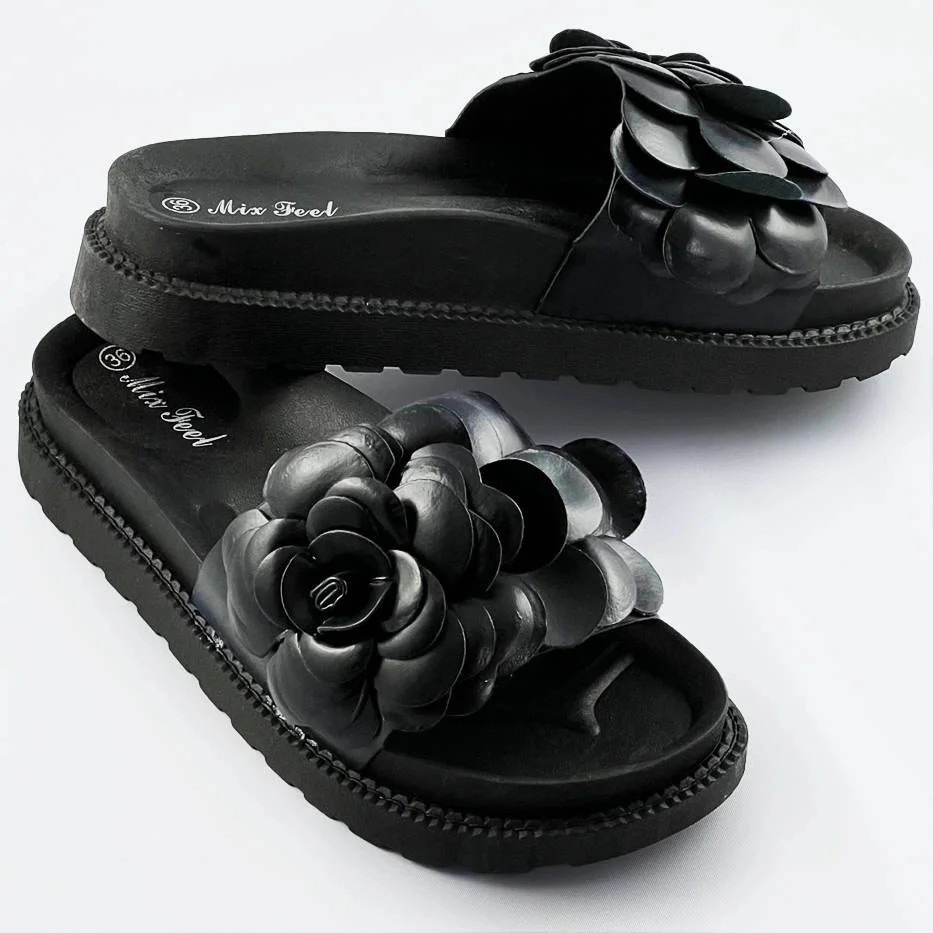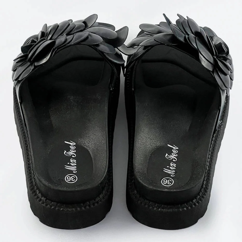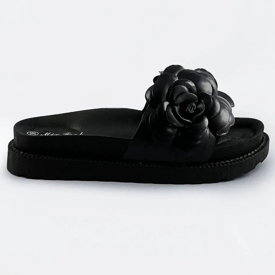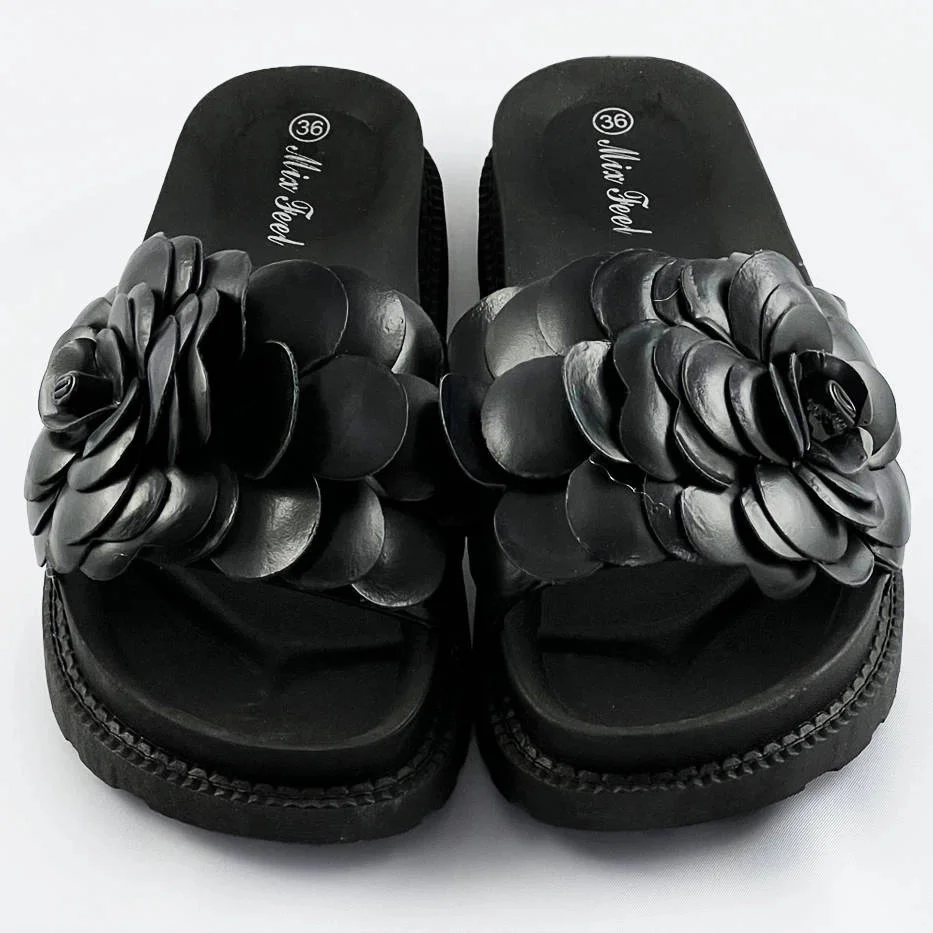 Černé dámské pantofle s květinou model 17352391 - Mix Feel