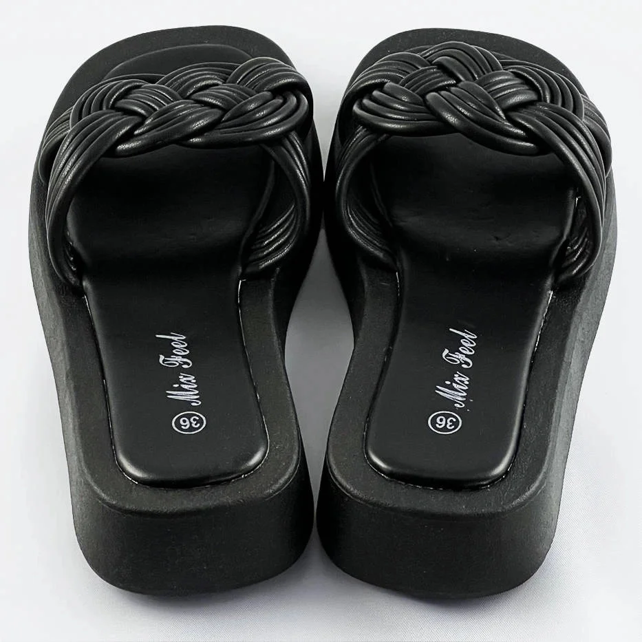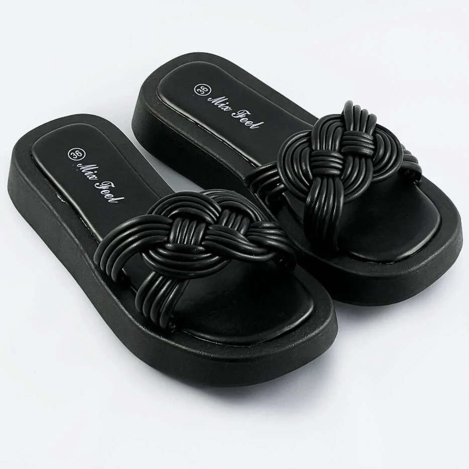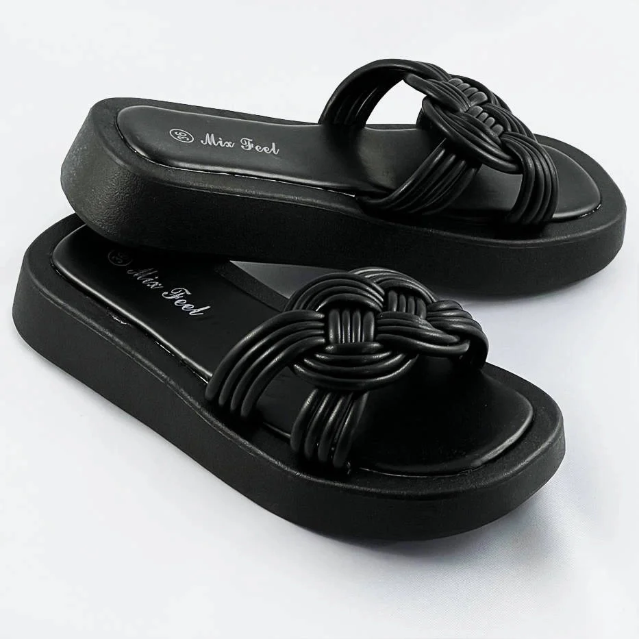 Přidání recenze k Černé dámské pantofle s plochou podrážkou (CM-49)