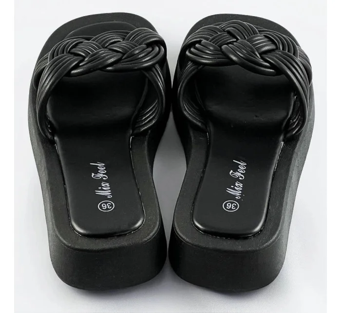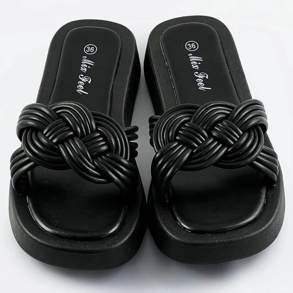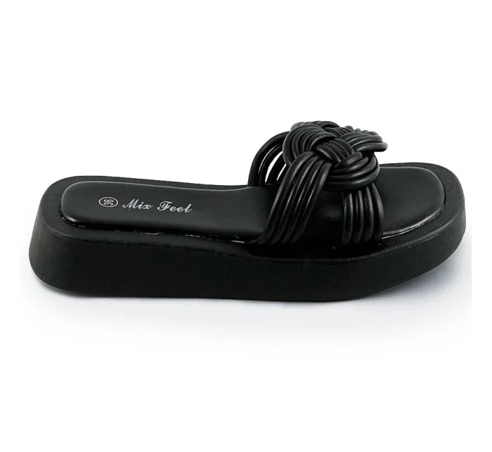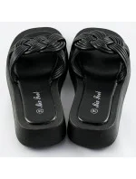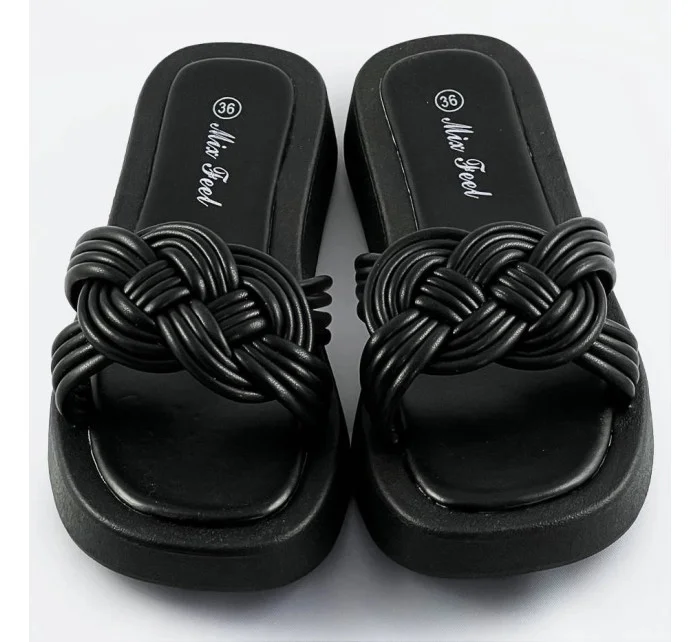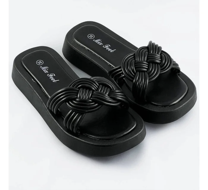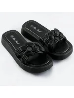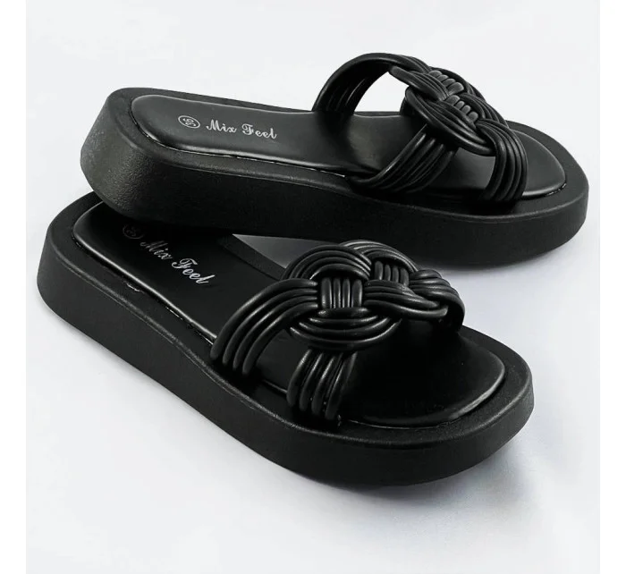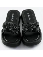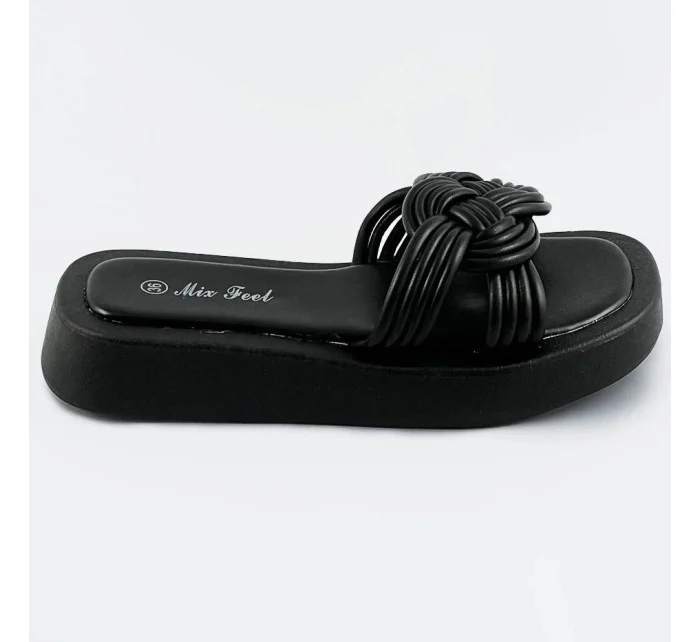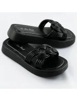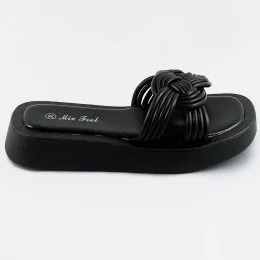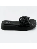 Černé dámské pantofle s plochou podrážkou (CM-49)
