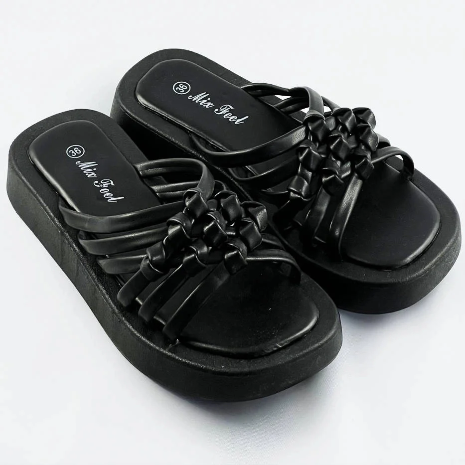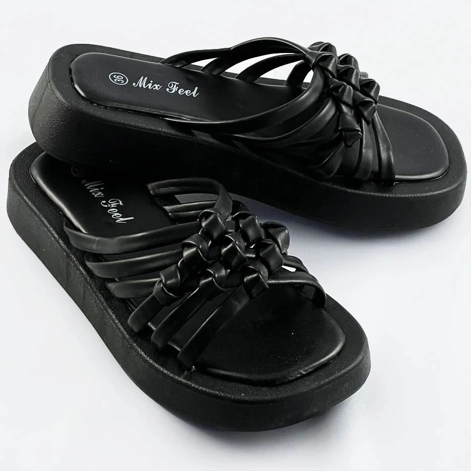 Černé dámské pantofle s plochou podrážkou (CM-59)